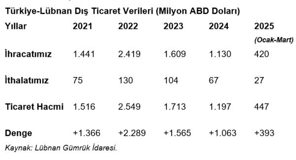 Türkiye-Lübnan ekonomik ilişkileri, 30.06.2025